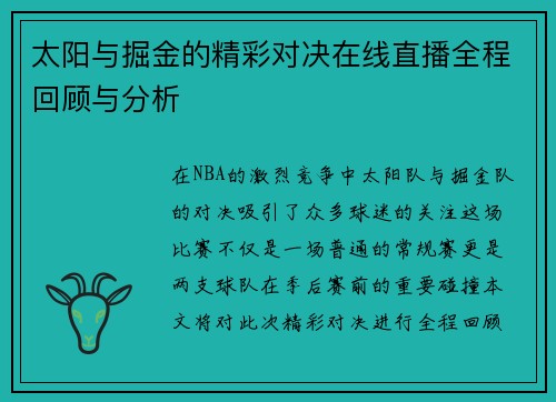 2023年12月30日,休斯顿火箭与新奥尔良鹈鹕在场上展开了一场激烈的对决。这场比赛不仅吸引了众多球迷的关注,也成为双方球队展现实力与战术的舞台。在比赛中,火箭凭借其年轻球员的出色表现和灵活多变的战术布局,一度占据主动,而鹈鹕则通过老将们的丰富经验和团队协作进行反击,形成了精彩纷呈的对抗。本文将从比赛过程、球员表现、战术分析及未来展望四个方面,对这场精彩赛事进行详细回顾与赛后分析,以期为读者提供更...