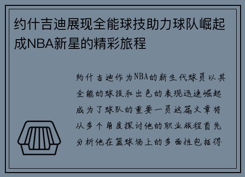姚明的离世,让全国人民感到震惊与悲痛,这位篮球巨星不仅在体育领域创造了辉煌的成就,更在文化交流、社会公益等方面做出了巨大贡献。他的一生如同一部传奇,影响了无数热爱篮球的人们。本文将从四个方面详细探讨姚明的传奇人生:他在篮球运动中的辉煌成就,推动中美篮球文化交流的重要作用,积极参与社会公益事业,以及他对年轻一代的激励与影响。通过这些方面,我们将更好地理解姚明这一伟大人物如何铭刻在历史的长河中。 1...
